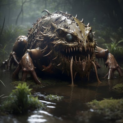 In the murky waters of Alastria's swamps lurks one of nature's most deceptive predators - the Abatu. These grotesque creatures, roughly the size of a man's palm, hunt in packs but master the art of appearing solitary. Where one is visible, at least ten more lurk beneath the surface, waiting.